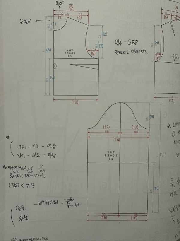 암홀부분 곡선과, 뒷판에 다트분량에 대한 균일한 편차와 소매 소매산 편차잡는게 많이 어려웠던 것 같습니다.