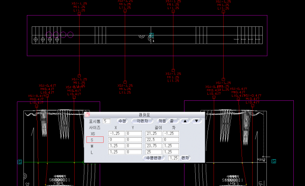 - **중요함!! 전개개시 후 사이즈편차 확인 필수 - 기본과 제일 먼 사이즈 키고 M-로 합복위치 길이 확인하기 - 허리의 이세량이 같은지도 확인 - DS로 끝점 확인도 가능 - GXY로 편차 확인도 가능 (M-, DS, GXY 총3가지로 그레이딩 후 확인 가능함) - 원본과 겹쳐 확인할 땐 CMV로