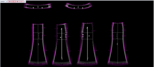 CMVU : 그레이딩 후 모든 사이즈의 밑단 말아박기 스티치 선을 그릴 때 사용함!