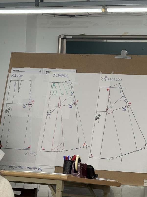 조별로 패턴을 그리고 스커트를 가봉해보는 시간도 가졌습니다.