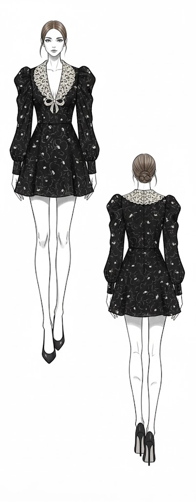 [형식] 앞면/뒷면 도식화 + 추천 컬러칩 3종 + 포인트 디테일 설명.