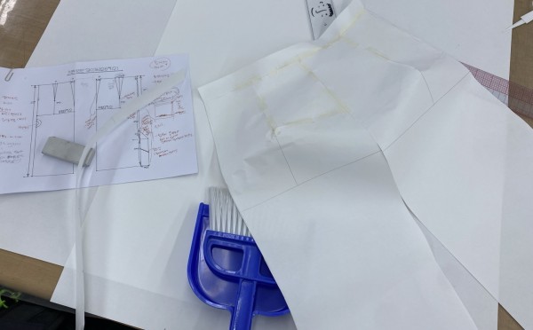 모델리스트 첫 수업에서 기본 H라인과 A라인 스커트 패턴을 종이에 그리고 종이 가봉하는 시간을 가졌습니다. 강사님이 먼저 시범을 보이면 따라서 기본적인 치수의 패턴을 그려내는 방식으로 수업이 진행 되었습니다. 강사님이 서두르지 않고 각자 단계적으로 해낼 수 있게 시간을 주셔서 안정적으로 진행 할 수 있었습니다. 자를 사용하는게 서툴러서 시간이 많이 걸렸지만 강사님이 하다보면 느는거라고 격려해주셔서 자신감을 갖고 선을 많이 긋는 즐거운 시간이었습니다. 패턴 제작이 끝나면 종이를 칼로 잘라서 종이 테이프를 붙여가며 형태를 만드는 종이 가봉을 했습니다. 종이가봉이란걸 처음 해봐서 이렇게 형태를 만들 수 도 있다는게 흥미로웠습니다. 앞으로 자를 잘 사용할 수 있게 연습을 열심히 해야겠습니다.