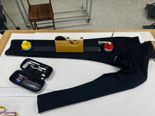 허리선에도 하나 송곳으로 고정해주고 앞기울기 뒤기울기도 송곳으로 표시해준다.(뭐가 앞인지 뒤인지 표시)