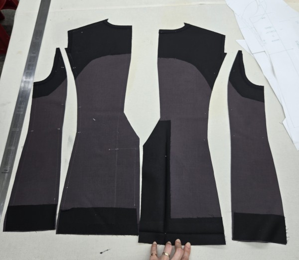 뒤판 재단에서는 심지 작업 후 원단 결선에 맞춰 배치하는 것이 우선이었어요.