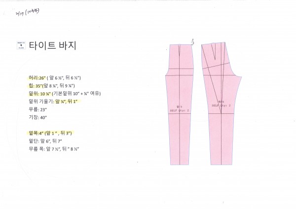 타이트바지는 정장바지보다 밑위길이를 1/4인치 짧게 10,1/4인치로 두고