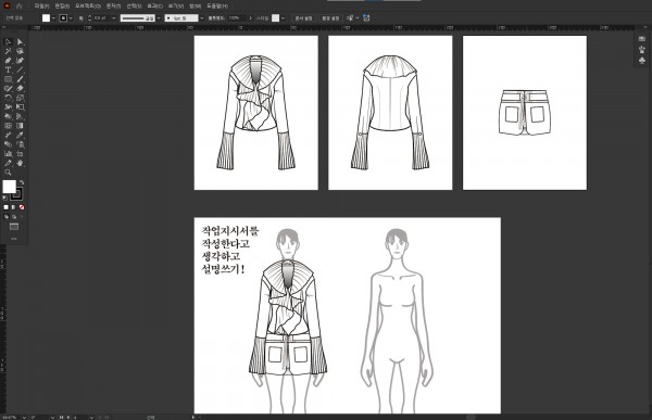 그림표현에 있어서 봉제 디테일이 부실해졌습니다. 옷이 어떻게 만들어질지 머릿 속으로