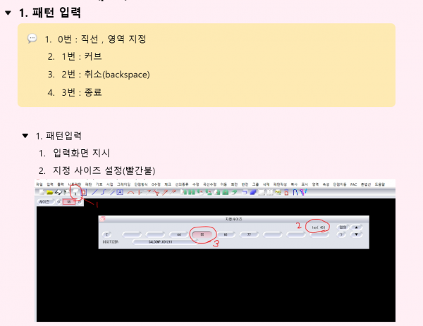 패턴 입력 과정에서 직선과 커브를 입력하는 방법, 입력 오류 시 수정하는 방법을 익혔어요.
