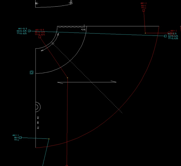 먼저, 180도 플레어 스커트 패턴을 디지타이저를 활용하여 입력하는 과정을 진행했어요.