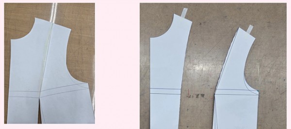 - 뒤판에서는 어깨 다트와 허리 다트를 직선으로 연결하여 어깨가 넓어 보이는 현상을 방지하기 위해 중심 쪽으로 들어간 곡선으로 제도하는 방법을 배웠어요.