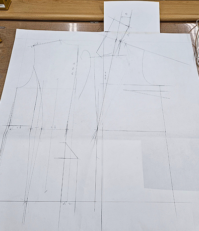 테일러드카라 뒷판, 앞판 패터을 배웠습니다. 뒷판을 그리기 전에 옷의 핏 활동여유분에 대한 이야기를 해주셨는데