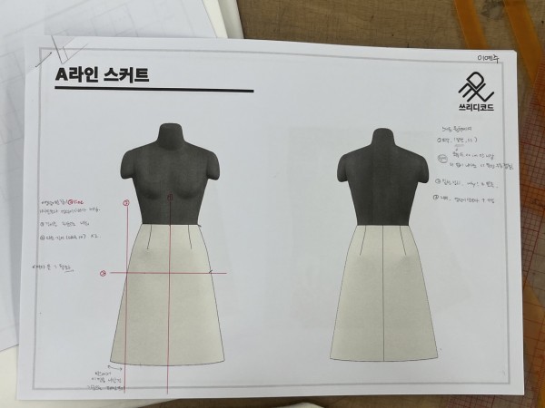 저번주 h라인 스커트에 이어 오늘은 A-line, 플레어 스커트를 배웠습니다.