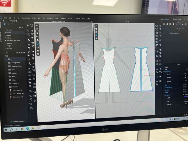 그리고 2D상에서 패턴끼리 봉제도 가능하고 그게 곧바로 3D로 시뮬레이션 돌리면 옷이 봉제가 된다.