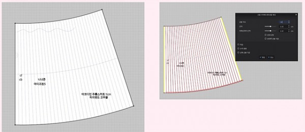 내부선의 배치는 CLO3D의 주름 시뮬레이션에 직접적인 영향을 주므로, 적절한 간격과 위치 조정이 필수적입니다.