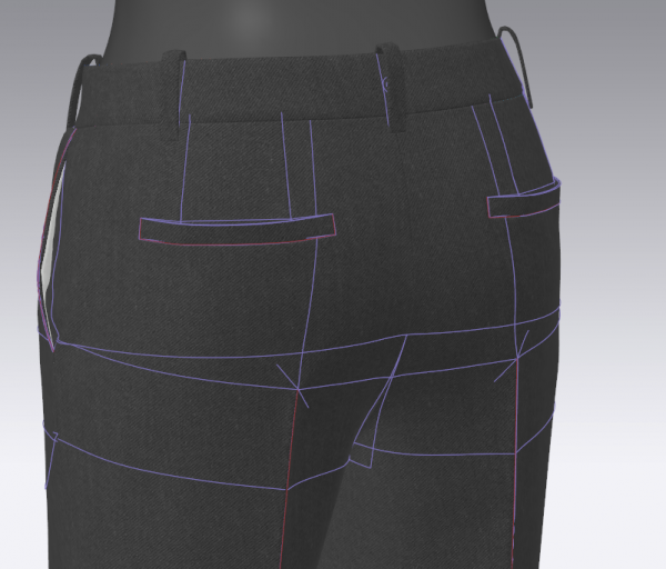 뒷주머니 가로선을 살짝 아래로 내려주면 더 현실성 있다.