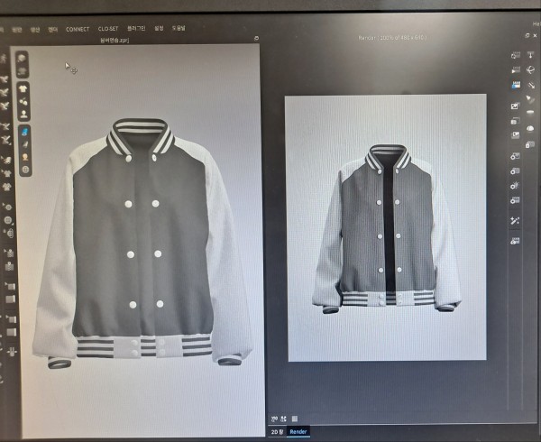 이렇게 자켓과 봄버점퍼를 제작한 후 조명기능을 배웠는데 그 효과가 렌더 이미지에서 보여지는 것을 보았고, 이 기능을 잘 사용하면