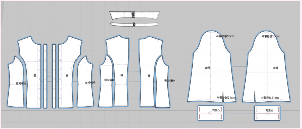 특히 트임 부분과 칼라 봉제에서 너치 포인트를 맞추는 것이 깔끔한 마감의 핵심이었어요.