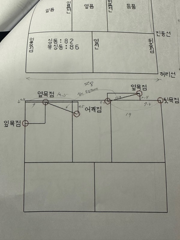 뒷목점, 앞목점, 옆목점, 어깨점 등 주요 포인트를 정확하게 설정하여 제도하는것이
