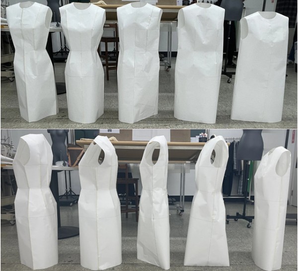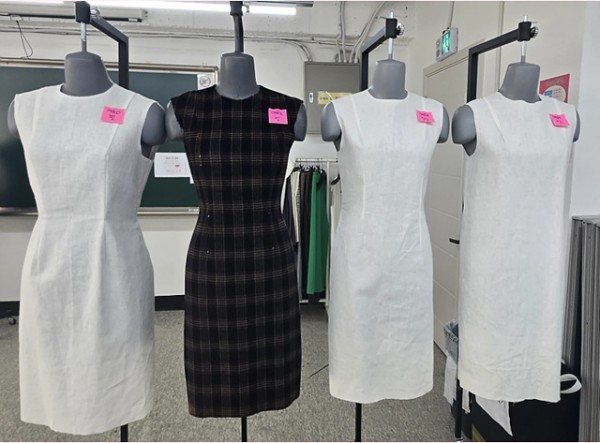이 세 가지 방식으로 토루소 원형을 어떻게 활용하는지, 가봉된 옷을 보며 옷의 전체적인 모양이 얼마나 달라지는지 확인할 수 있었어요.