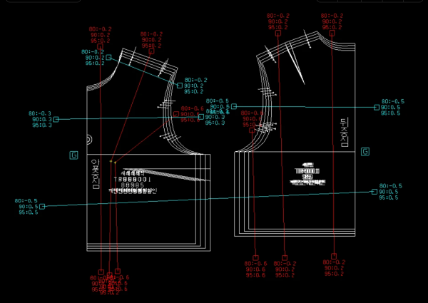 - 소매산을 몸판의 암홀 길이에 맞춰 조정하며, 편차를 최대한 조정하여 최적의 그레이딩값을 찾습니다.