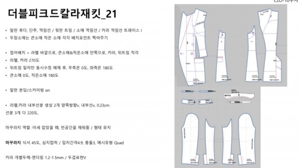 자켓 봉제에 대한 이해를 정확하게 한 후에 클로를 만져야될 것 같았습니다. 기태쌤이 설명을 잘해주셔서 차근차근 따라갈 수 있었습니다.