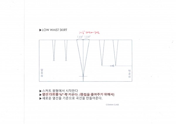 lowwaist sk는 중힙을 줄여주기위해 원허리선에서 1/4인치 줄여주는것이 필수입니다.