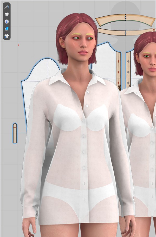 최초 여성아바타에게 입혀 박시하고 매니쉬한 느낌을