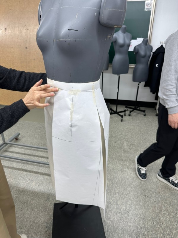 가장 기본 55사이즈 H스커트를 배웠는데 박스에서 시작해서 옷이 만들어진다는 것이 너무 신기했고 힙 사이즈에 맞춰서 옷을 만드는 것, 다트를 넣어서 허리 부분 줄여주는 것, 선을 완만하게 그려서 옷을 예쁘게 만들 수 있다는 점 등 모두가 너무 재미있고 옷을 만드는 과정이 재미있었습니다.