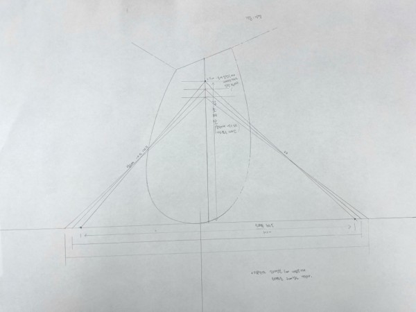 1. 절개선 찾기. 소매통에서 이등분선 F,B 각각 수직으로 그리기