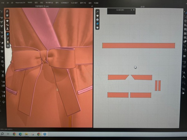 실제로 리본을 묶는 것 처럼 묶어줘야하는데 3d는 양손을 쓸 수 없으므로 w 핀고정을 이용해서 고정을 해주면서