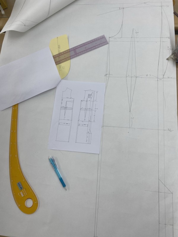 오늘은 자켓 기본 원형과 나시 원피스를 배웠다. 자켓 기본 원형을 용용해서 나시 원피스를 만들어낼 수 있다는게 신기했다. 새로운 것들을 배우면서 모든 옷들이 개별적인 느낌으로 다가오는게 아니라 더하고 더해서 적립이 된다는게 배워가고 있다는걸 느낄 수 있었다. 비가 와서 그런지 사람들이 피로해했는데 중간에 강사님이 음료수를 사주시고 재밌는 말들로 분위기를 좋게 만들어주셔서 편한 분위기로 수업을 진행할 수 있었다. 앞으로 남은 수업도 많이 배워가고 싶다.