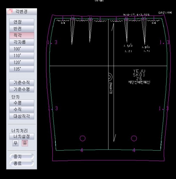 보라색부터 시계방향으로 돌면서. 시접양이 달라지는 끝부분 클릭하고 시접양 시정