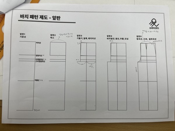 큐롯,와이드 (1:2), 정장, 타이트. 스키니 (1:3)으로 구분하여 치수를 정리했습니다.