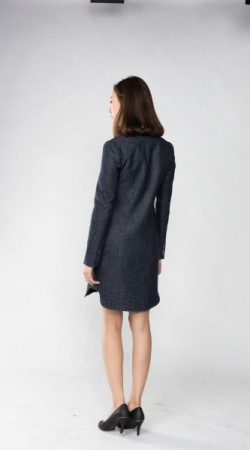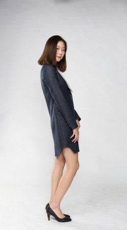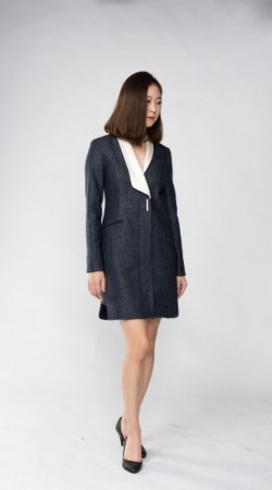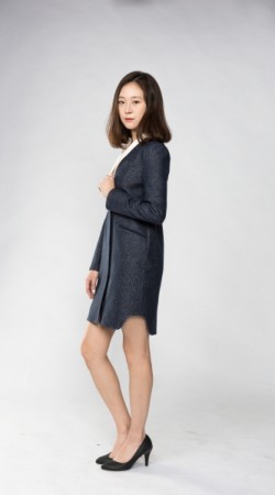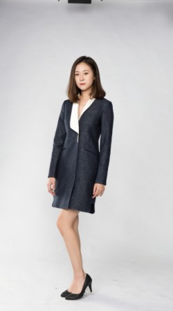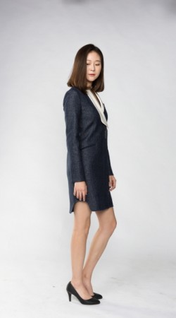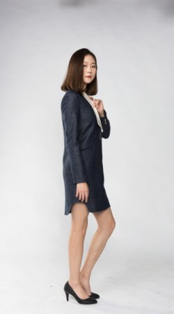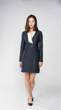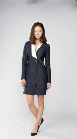 오피스룩 스타일의 단정한 스타일 원피스. 칼라부분에 공단 배색을 넣어 산뜻한 느낌을 주었고,