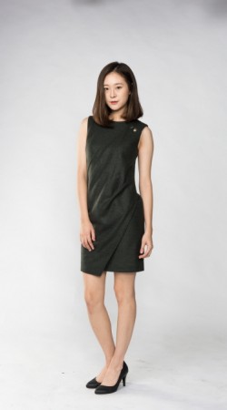 허리 라인이 많이 들어가지 않아 편안하게 입을 수 있는 스타일이면서, 앞판에 비대칭 라인으로 슬림한 느낌을 줍니다.