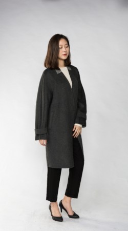 칼라부분을 다른 색상으로 배색 해 주어 칼라가 달려있는 느낌을 주었고, 오픈해 입으셔도 세련된 느낌을 줄 수 있습니다.