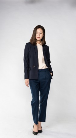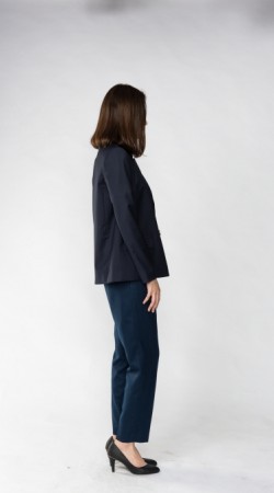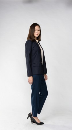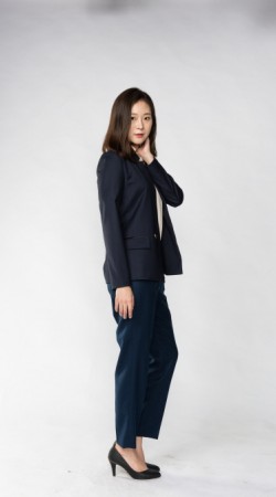 칼라부분이 세워진 듯 한 느낌을 주는 변형된 스타일로 카라와 라펠 부분에 배색을 끼워 물렸습니다.